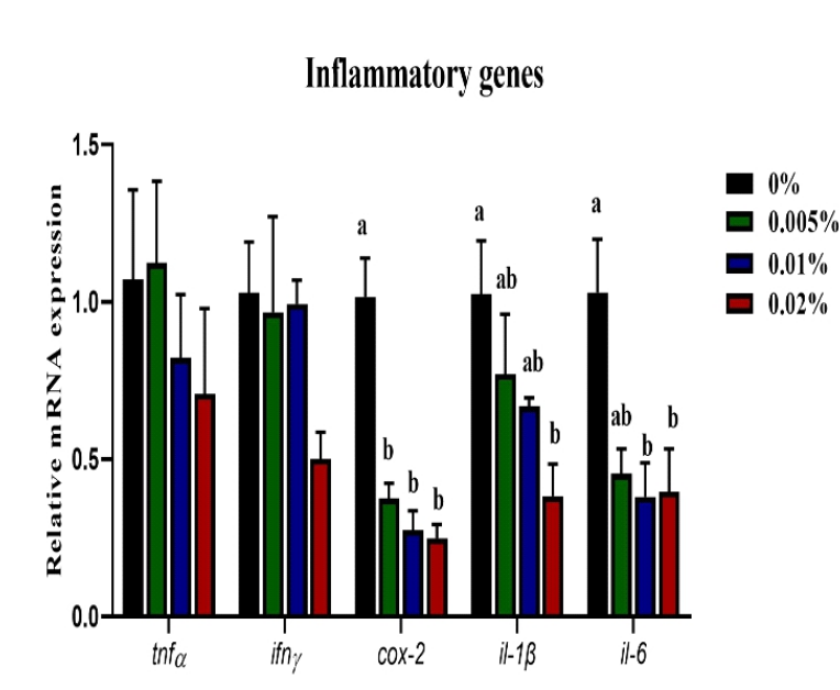 Figur 2 Effekter av allicin på uttrykk av inflammatoriske gener hos stor gul croaker